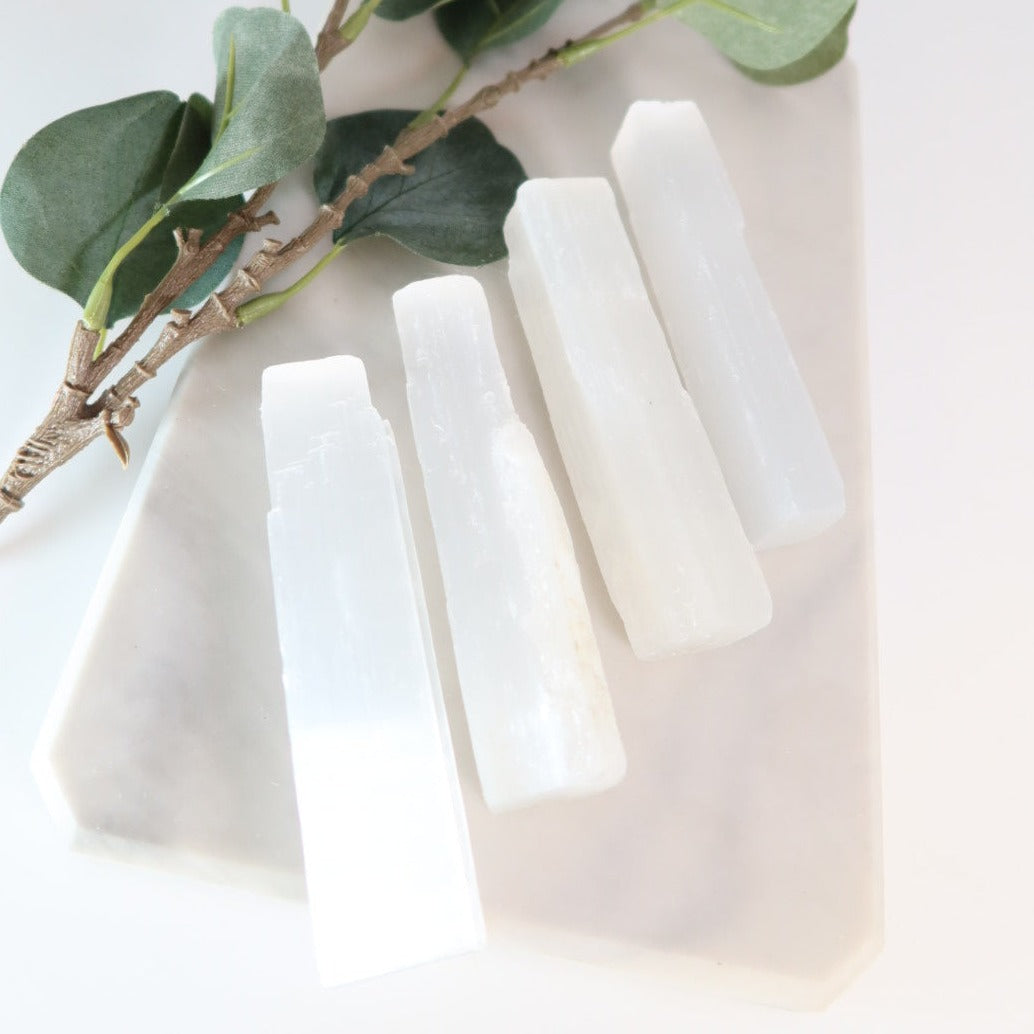 This bundle contains four Selenit Sticks to help achieve mental stability.